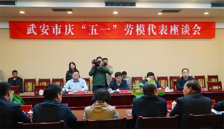 “五一”國(guó)際勞動(dòng)節(jié)臨近,為弘揚(yáng)勞模精神,在全社會(huì)樹(shù)立“尊勞模、學(xué)勞模、做勞?!钡孽r明導(dǎo)向,營(yíng)造“勞動(dòng)最光榮,勞動(dòng)人民最光榮”的濃厚氛圍,4月26日,武安市總工會(huì)在藍(lán)天賓館舉辦了慶“五一”勞模代表座談會(huì),出席座談會(huì)的領(lǐng)導(dǎo)有市委副書(shū)記路銘,市人大副主任、總工會(huì)主席張?jiān)鱿椋锌偣?huì)黨組書(shū)記、常務(wù)副主席王啟良,市總工會(huì)副主席王從江及14名勞動(dòng)模范代表人參加了座談。座談會(huì)由武安市人大副主任、總工會(huì)主席張?jiān)鱿橹鞒?。公司黨委副書(shū)記、總經(jīng)理石躍強(qiáng)應(yīng)邀出席了會(huì)議。