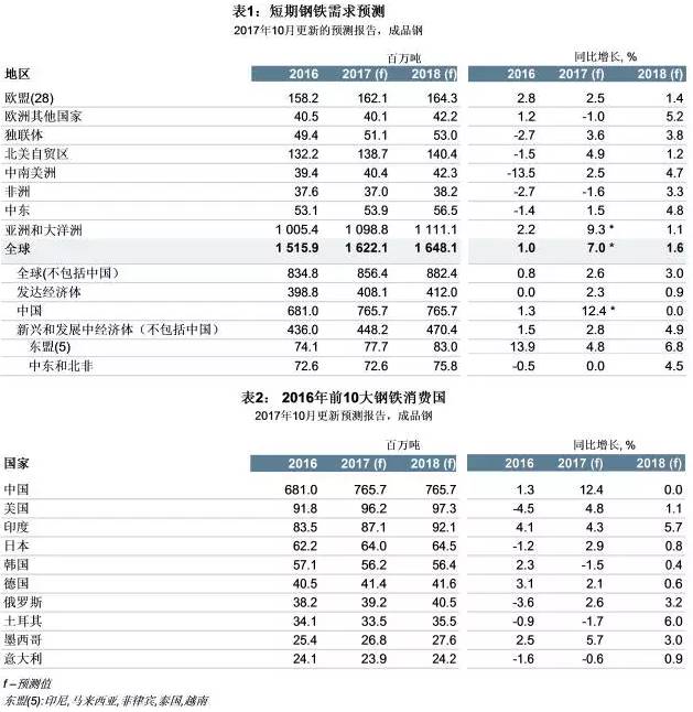 世界鋼鐵協(xié)會(huì)今日發(fā)布2017年10月更新的2017-2018年短期鋼鐵需求預(yù)測(cè)結(jié)果。據(jù)預(yù)測(cè),2017年全球鋼鐵需求將達(dá)到16.221億噸,2018年全球鋼鐵需求將達(dá)到16.481 億噸。