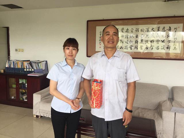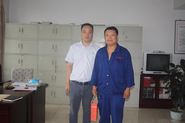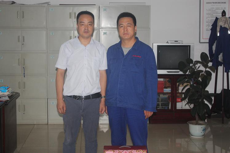 張勝利在接受新武安鋼鐵集團(tuán)董事長(zhǎng)萬(wàn)喜河頒獎(jiǎng)時(shí)的照片