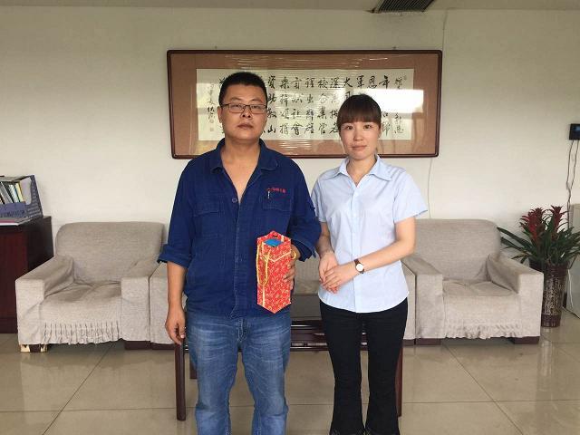 牛現(xiàn)利(“最美鋼鐵人”評(píng)選活動(dòng)優(yōu)秀獎(jiǎng))在領(lǐng)獎(jiǎng)時(shí)的照片