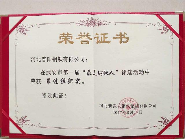 8月16日,武安市首屆“最美鋼鐵人”評(píng)選結(jié)果揩曉:我公司焦化廠廠長(zhǎng)張勝利、普陽(yáng)煉鋼廠廠長(zhǎng)石劍飛、中普煉鐵廠廠長(zhǎng)申建軍,榮獲此次活動(dòng)的前三名;申習(xí)民、王旗杰、?,F(xiàn)利榮獲“優(yōu)秀獎(jiǎng)”。同時(shí),我公司還榮獲“最佳組織獎(jiǎng)”。