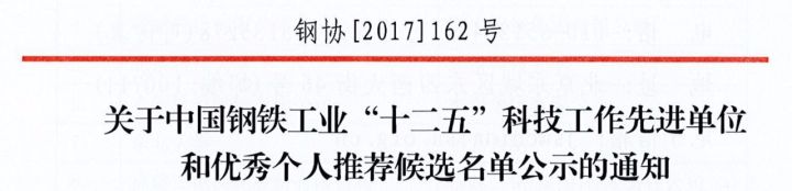 《通知》稱,沒有異議和異議處理完畢的候選單位和人員, 將提交專家委員會和鋼鐵工業(yè)科技大會籌備工作領導小組評選。