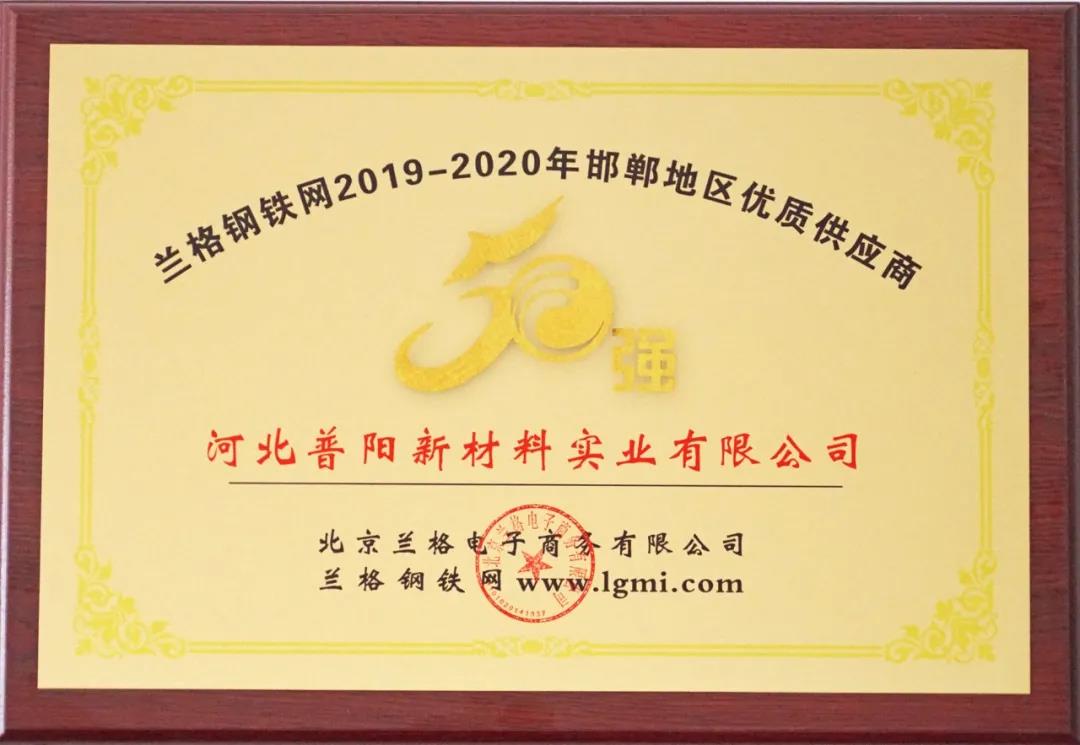 論壇對邯鄲地區(qū)優(yōu)質(zhì)供應(yīng)商和鋼鐵流通行業(yè)卓越領(lǐng)軍人物進行了表彰,河北普陽新材料實業(yè)有限公司榮獲“蘭格鋼鐵網(wǎng)2019-2020年邯鄲地區(qū)優(yōu)質(zhì)供應(yīng)商50強”榮譽稱號,總經(jīng)理劉超當選“蘭格鋼鐵網(wǎng)2020年度邯鄲地區(qū)鋼鐵流通行業(yè)卓越領(lǐng)軍人物”。