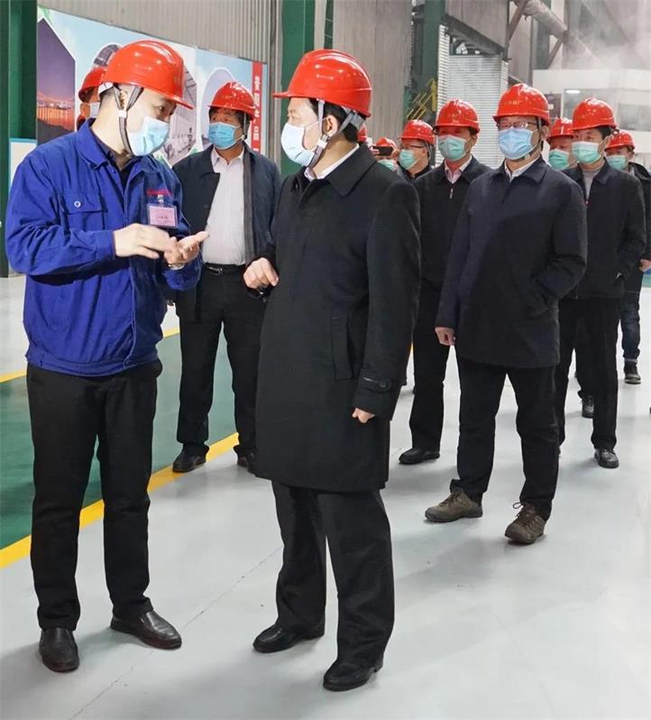 在普陽中板廠生產(chǎn)車間,強(qiáng)延峰一行深入現(xiàn)場,認(rèn)真檢查疫情防控落實(shí)工作,并詳細(xì)了解生產(chǎn)情況。