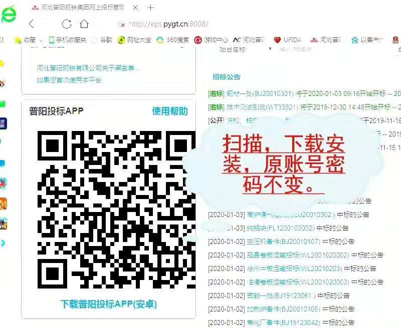 各位供應(yīng)商合作伙伴,從下周起普陽鋼鐵招標(biāo)網(wǎng)上報(bào)價(jià)和公眾號(hào)報(bào)價(jià)通道就已經(jīng)關(guān)閉?。楸WC以后招標(biāo)的流程能順利進(jìn)行,請(qǐng)下載"普陽投標(biāo)APP"進(jìn)行手機(jī)參與招標(biāo)報(bào)價(jià),原賬號(hào)密碼不變。目前只支持安卓版,有技術(shù)上問題請(qǐng)撥打0310-5178939。